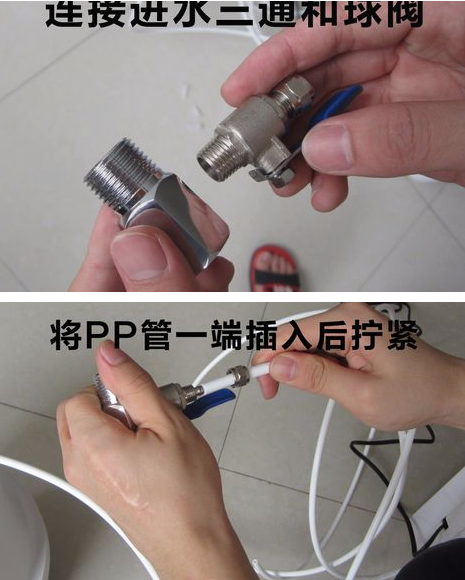 通過將儲水罐,進水排水口和水龍頭管連接到您的設備來完成安裝: