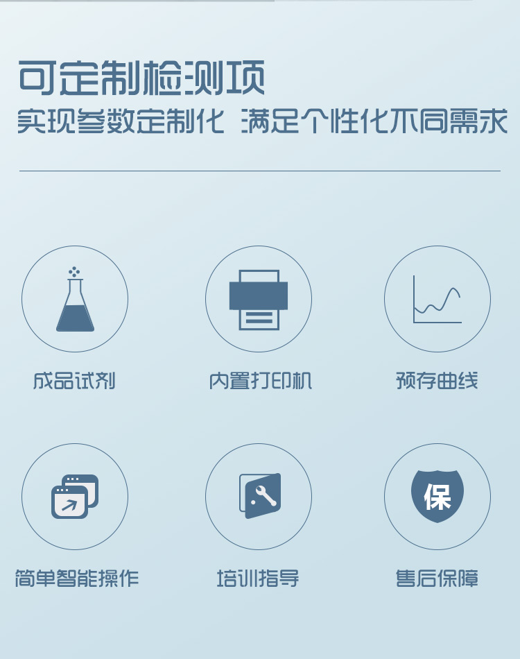 3、溶解氧測試儀采用分光光度的光電比色原理,操作簡便,取水樣放入試劑反應幾分鐘即可讀數,重復性≤±2%。