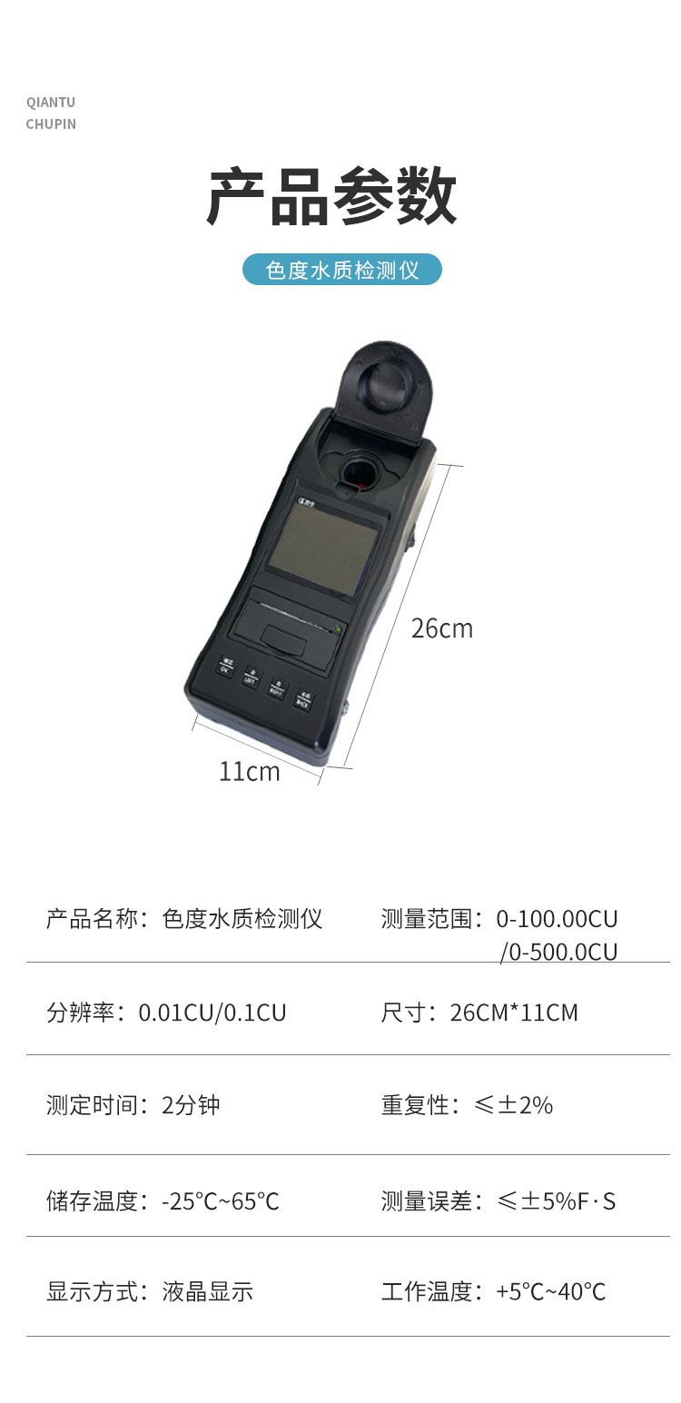 貫奧色度檢測儀可快速準確測定地表水、地下水、城市污水及工業廢水中色度指標,濃度直讀;可廣泛用于水廠、食品、化工、冶金、環保及制藥行業等部門。儀器是由單個的固定波長固定用途的分光光度計糅合而成的,采用分光光度法原理對各參數進行測量,在儀器中建立不同參數的濃度顯色程度與吸光度的線性曲線,儀器通過對顏色的辨別,得出被測水樣的濃度。本儀器采用全中文菜單,操作簡易易懂,使用方便快速測量準確度高。